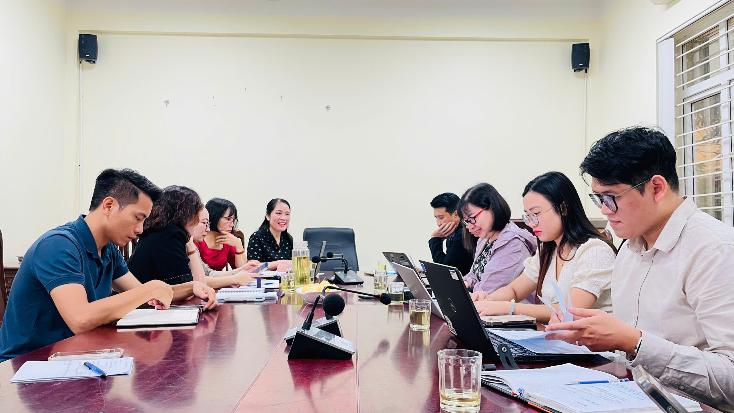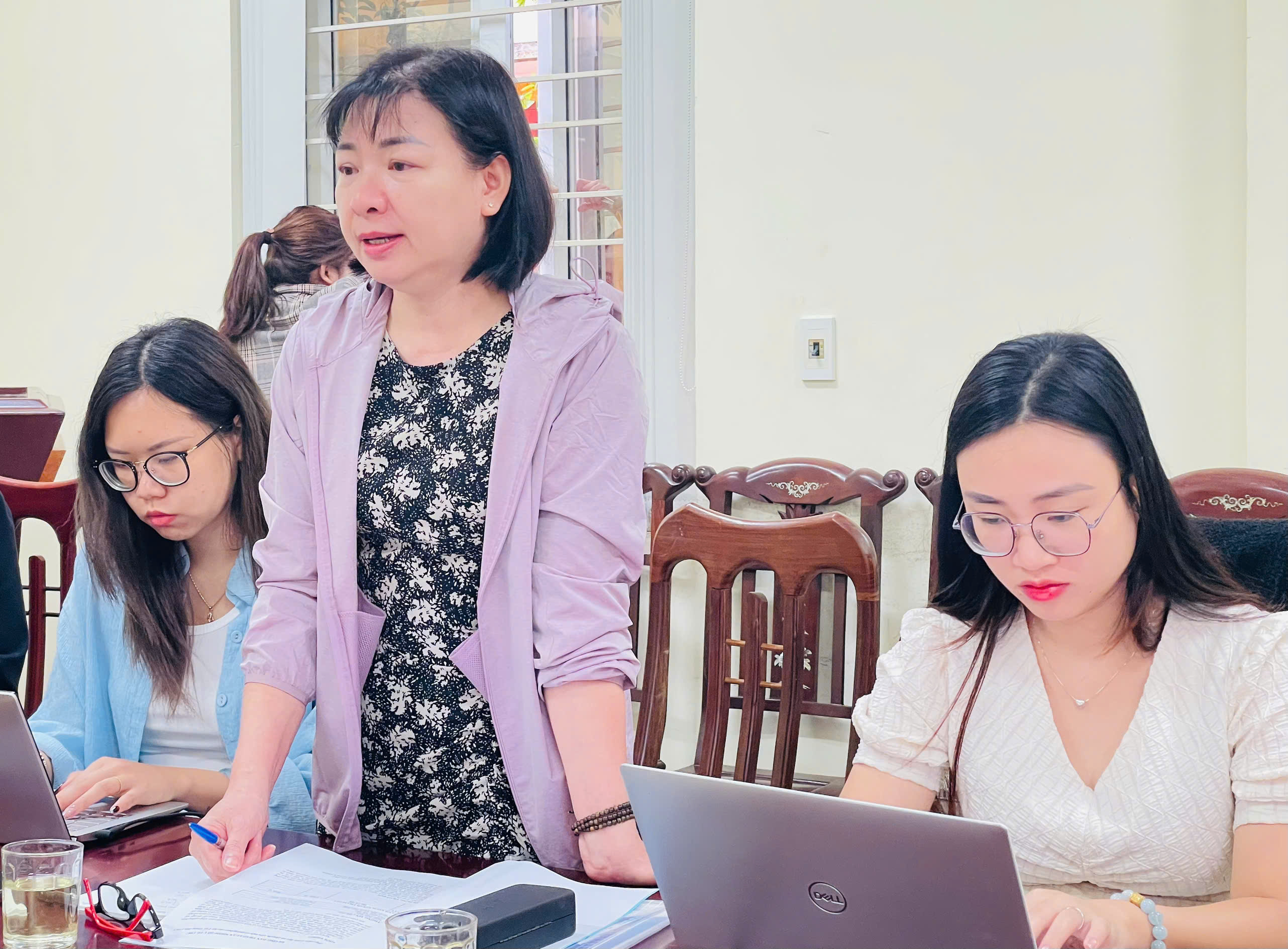 TS. Nguyễn Thị Thắng, Trưởng khoa Y tế công cộng, Viện Chiến lược và Chính sách Y tế trao đổi trong buổi làm việc tại Sở Y tế Bắc Ninh