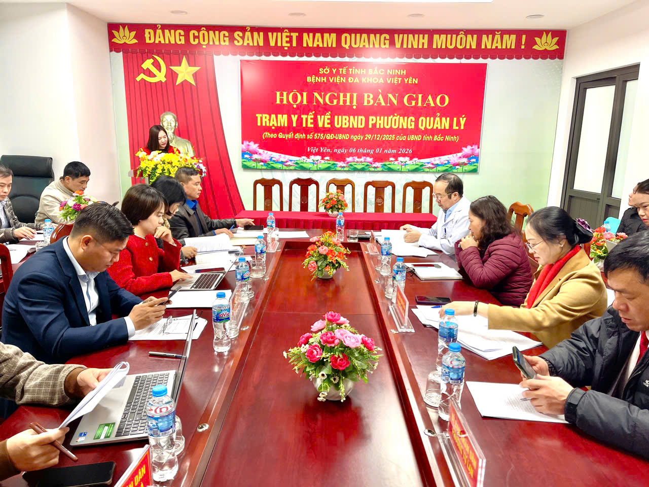 Sáng 6/01, tại BVĐK Việt Yên, Tổ công tác số 3 của Sở Y tế Bắc Ninh do ông Từ Quốc Hiệu, Phó Giám đốc làm trưởng đoàn tiếp tục tổ chức hội nghị bàn giao các trạm y tế thuộc khu vực Việt Yên về UBND các phường quản lý. Dự hội nghị bàn giao có đại diện  lãnh đạo BVĐK Việt Yên; lãnh đạo  các UBND và trạm y tế các phường: Việt Yên, Tự Lạn, Nếnh, Vân Hà và các đơn vị liên quan.