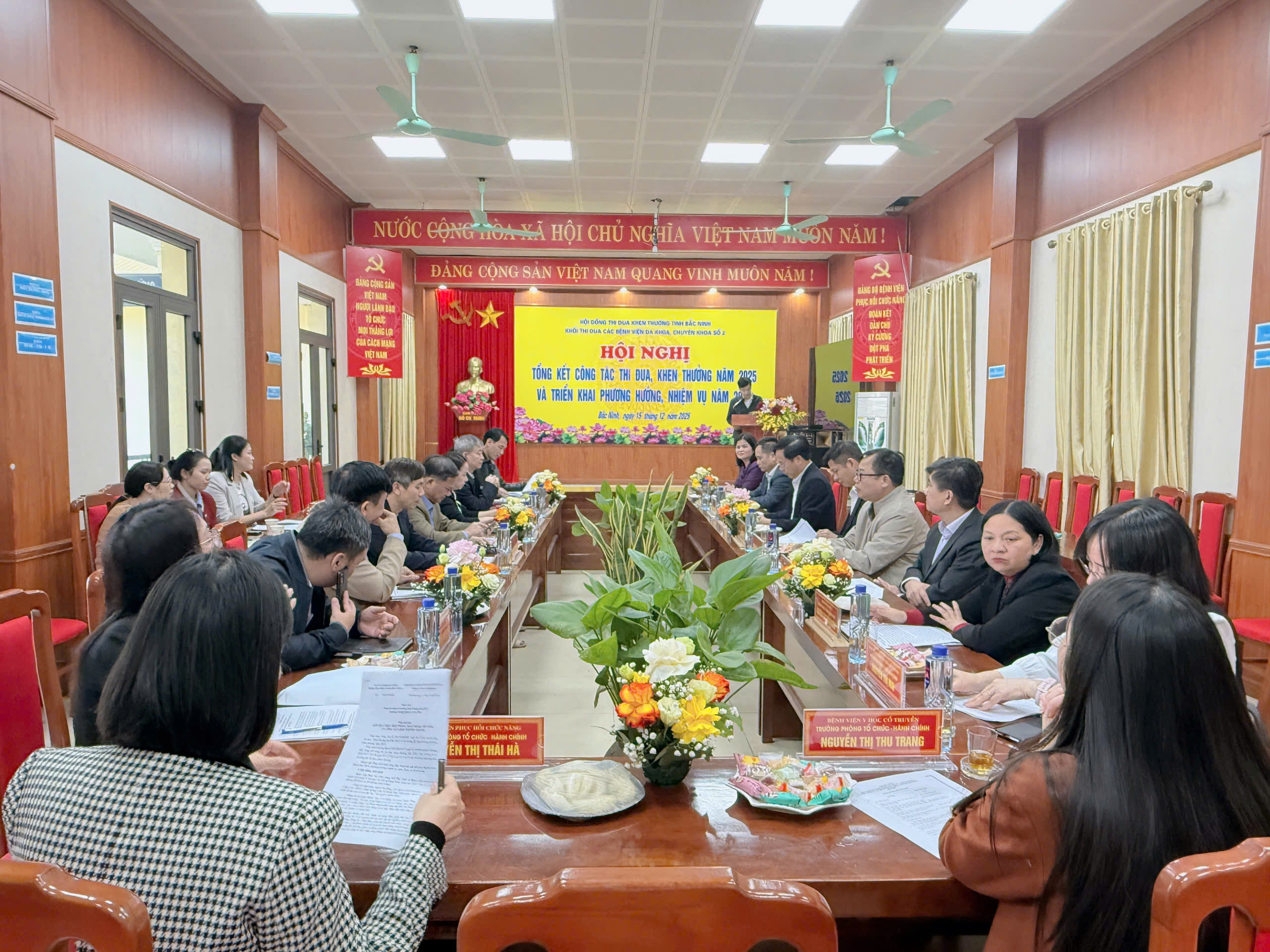 Chiều ngày 15/12/2025, tại Bệnh viện Phục hồi chức năng Bắc Ninh, Khối Thi đua các Bệnh viện Đa khoa, chuyên khoa số 2 trực thuộc Sở Y tế tỉnh Bắc Ninh đã tổ chức Hội nghị tổng kết công tác thi đua, khen thưởng năm 2025 và triển khai phương hướng, nhiệm vụ năm 2026. Dự và chỉ đạo Hội nghị có đồng chí Nguyễn Hữu Hưng – Phó Giám đốc Sở Y tế tỉnh Bắc Ninh, cùng lãnh đạo và cán bộ phụ trách công tác thi đua, khen thưởng của các đơn vị trong Khối Thi đua gồm Bệnh viện Phục hồi chức năng (Trưởng khối), Bệnh viện Y học cổ truyền (Phó trưởng khối), Bệnh viện Sức khoẻ tâm thần Bắc Ninh số 1, Bệnh viện sức khoẻ tâm thần Bắc Ninh số 2, Bệnh viện YHCT và PHCN, Bệnh viện Da Liễu, Bệnh viện Mắt, Bệnh viện Nội tiết.