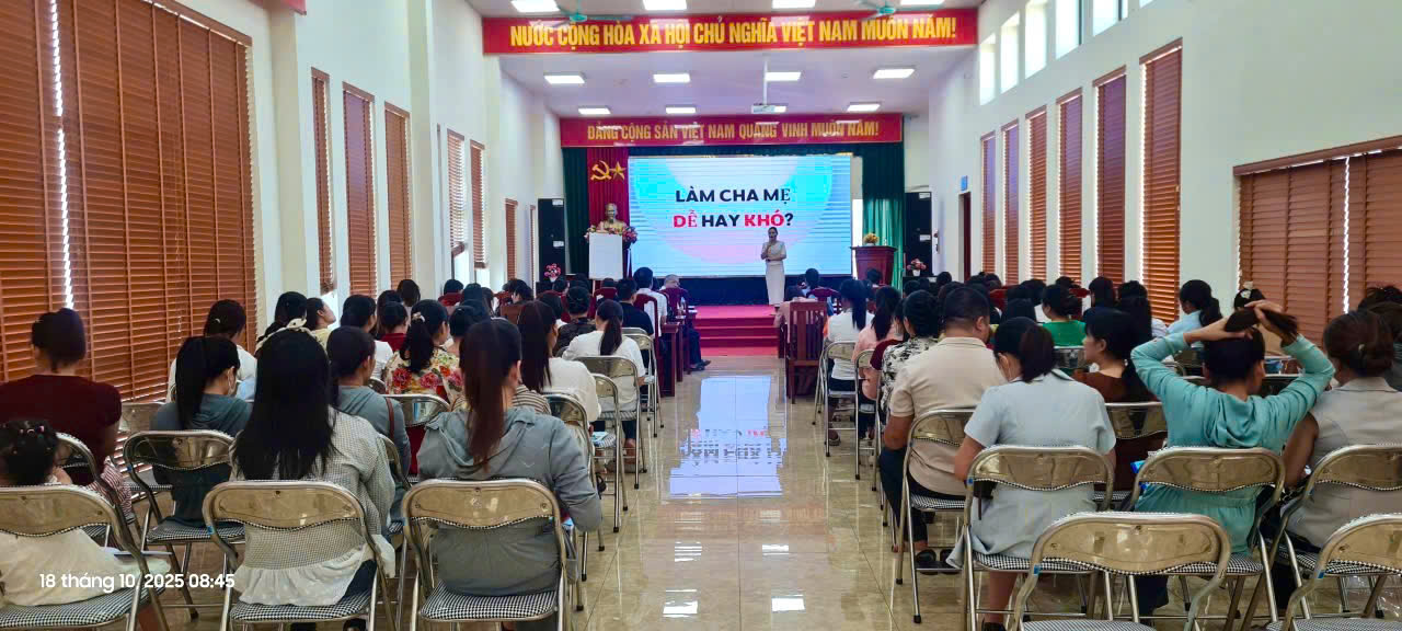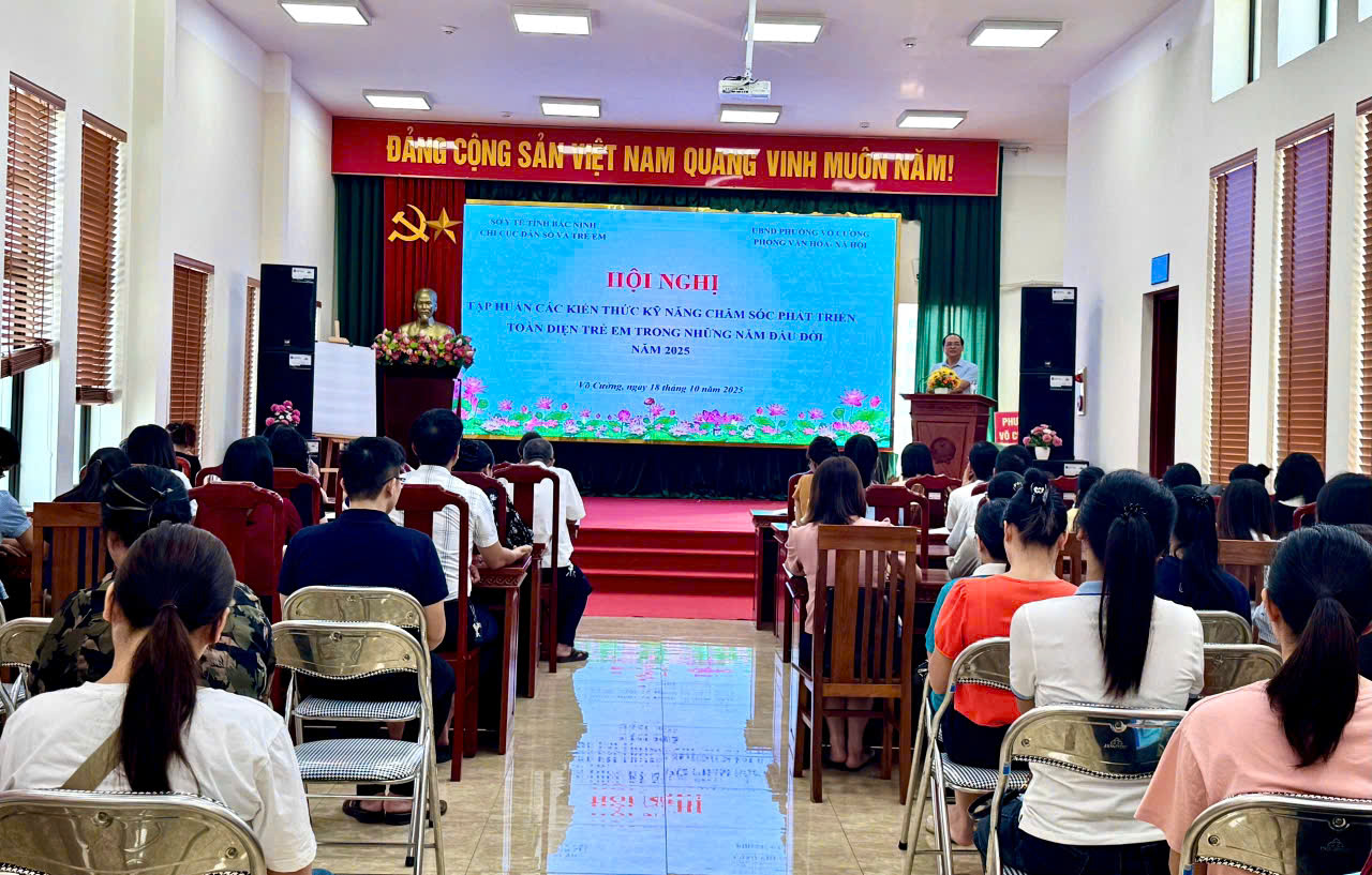 Từ ngày 14-28/10, Chi cục Dân số và Trẻ em tỉnh Bắc Ninh phối hợp với Cục Bà mẹ Trẻ em tổ chức 05 lớp tập huấn kiến thức kỹ năng chăm sóc phát triển toàn diện trẻ em trong những năm đầu đời tại một số xã, phường: Yên Phong, Võ Cường, Quang Trung, Lạng Giang, Yên Dũng.