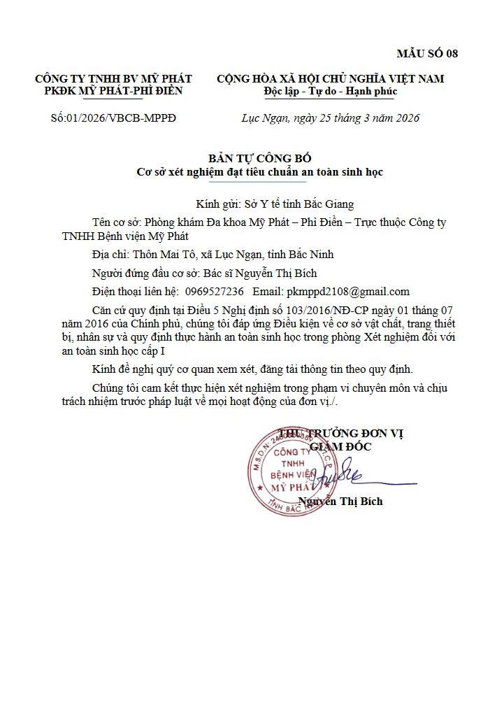 Phòng khám đa khoa Mỹ Phát - trực thuộc Công ty TNHH Bệnh viện Mỹ Phát