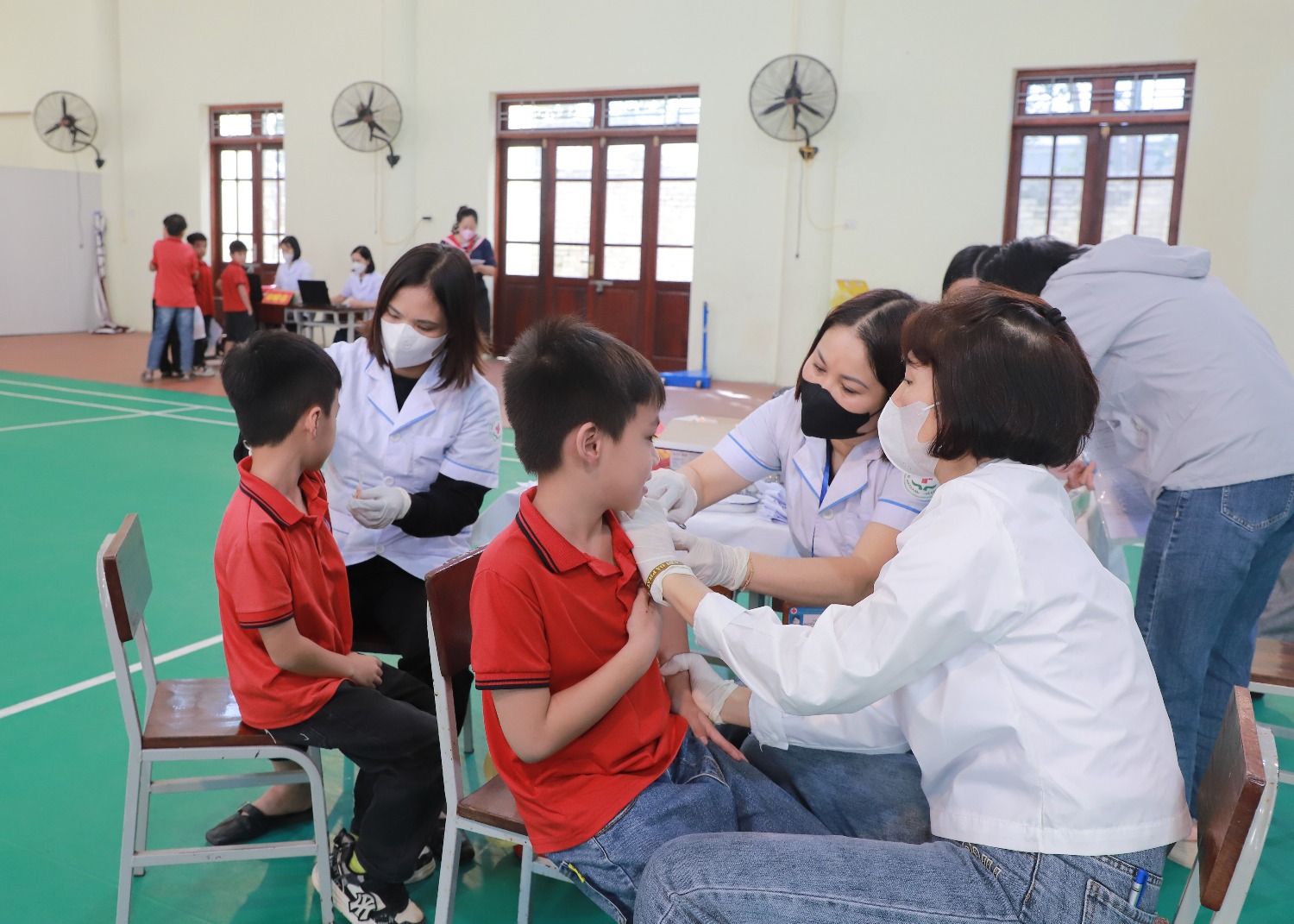 Các điểm tiêm lưu động được bố trí đầy đủ vắc xin, vật tư tiêm chủng cũng như chống sống đảm bảo theo đúng quy định. Sau khi tiêm xong và theo dõi 30 phút sau tiêm tại trường, trẻ được tiếp tục tư vấn theo dõi sức khỏe tại nhà.