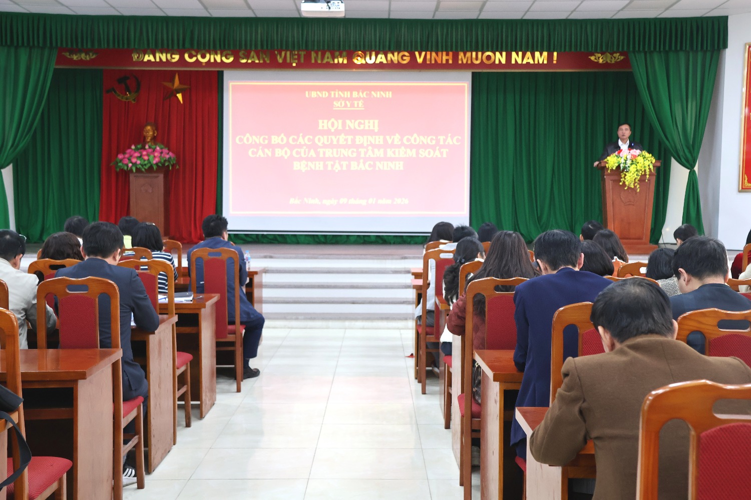 Chiều ngày 09/01/2026, Sở Y tế tỉnh Bắc Ninh tổ chức Hội nghị công bố các quyết định về công tác cán bộ của Trung tâm Kiểm soát bệnh tật Bắc Ninh trên cơ sở sáp nhập Trung tâm Kiểm soát bệnh tật Bắc Ninh số 1, Trung tâm Kiểm soát bệnh tật Bắc Ninh số 2 và Trung tâm Kiểm nghiệm Bắc Ninh.