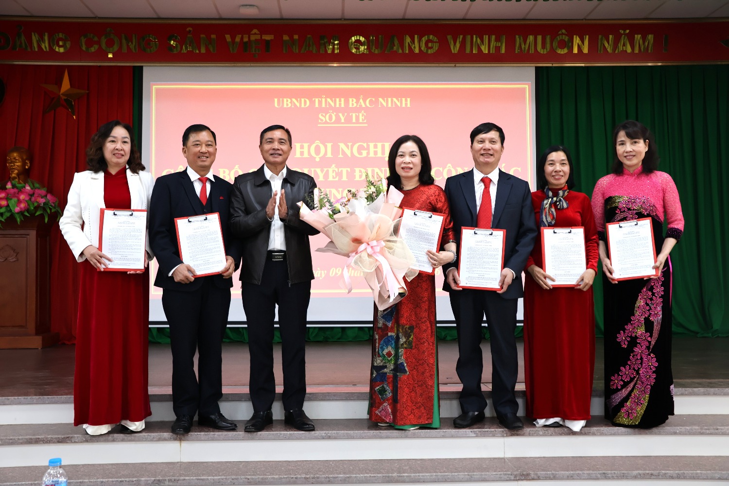 Thay mặt Giám đốc Sở Y tế, đồng chí Từ Quốc Hiệu - Phó Giám đốc Sở Y tế đã trao các quyết định bổ nhiệm các Phó Giám đốc Trung tâm Kiểm soát bệnh tật Bắc Ninh. Theo đó: Bổ nhiệm bà Ngô Thị Thu Hà, Giám đốc Trung tâm Kiểm soát bệnh tật Bắc Ninh số 1 (trước khi sắp xếp, tổ chức lại) giữ chức vụ Phó Giám đốc Trung tâm Kiểm soát bệnh tật Bắc Ninh, thuộc Sở Y tế tỉnh Bắc Ninh từ ngày 01/01/2026. Thời hạn bổ nhiệm 5 năm (60 tháng) kể từ ngày 01/12/2023; Bổ nhiệm bà Đoàn Thị Kim Ưng, Giám đốc Trung tâm Kiểm nghiệm Bắc Ninh (trước khi sắp xếp, tổ chức lại) giữ chức vụ Phó Giám đốc Trung tâm Kiểm soát bệnh tật Bắc Ninh, thuộc Sở Y tế tỉnh Bắc Ninh từ ngày 01/01/2026. Thời hạn bổ nhiệm 5 năm (60 tháng), kể từ ngày 01/01/2025; Bổ nhiệm ông Lê Tiến Cương và bà Phan Thị Thi, Phó Giám đốc Trung tâm Kiểm soát bệnh tật Bắc Ninh số 1 (trước khi sắp xếp, tổ chức lại) giữ chức vụ Phó Giám đốc Trung tâm Kiểm soát bệnh tật Bắc Ninh, thuộc Sở Y tế tỉnh Bắc Ninh từ ngày 01/01/2026. Thời hạn bổ nhiệm 5 năm (60 tháng), kể từ ngày 01/01/2022; Bổ nhiệm bà Khổng Thục Chinh và ông Nguyễn Khắc Từ, Phó Giám đốc Trung tâm Trung tâm Kiểm soát bệnh tật Bắc Ninh số 2 (trước khi sắp xếp, tổ chức lại) giữ chức vụ Phó Giám đốc Trung tâm Kiểm soát bệnh tật Bắc Ninh, thuộc Sở Y tế tỉnh Bắc Ninh từ ngày 01/01/2026. Thời hạn bổ nhiệm 5 năm (60 tháng), kể từ ngày 07/11/2022.