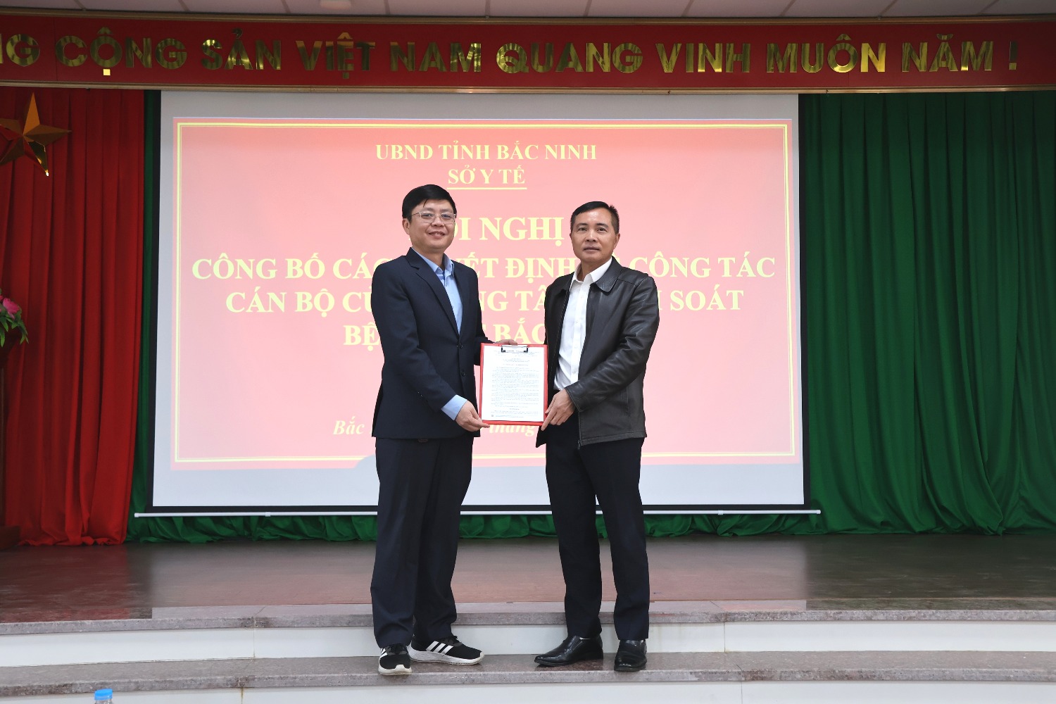 Tại Hội nghị, thừa ủy quyền của chủ tịch UBND tỉnh, đồng chí Từ Quốc Hiệu – Phó Giám đốc Sở Y tế đã trao quyết định bổ nhiệm bà Ngô Thị Xuân – Giám đốc Trung tâm Kiểm soát bệnh tật Bắc Ninh số 2 (trước khi sắp xếp, tổ chức lại đơn vị), giữ chức Giám đốc Trung tâm Kiểm soát bệnh tật Bắc Ninh, trực thuộc Sở Y tế từ ngày 01/01/2026. Thời hạn bổ nhiệm 5 năm (60 tháng), thời gian tính kể từ ngày 07/3/2025.