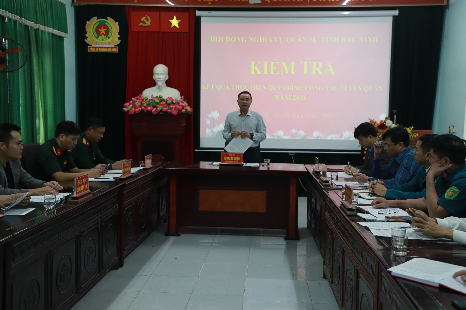 Chiều ngày 24/10/2025, Đoàn kiểm tra của Sở Y tế tỉnh Bắc Ninh do đồng chí Từ Quốc Hiệu – Phó Giám đốc Sở Y tế làm Trưởng đoàn đã tiến hành kiểm tra kết quả thực hiện quy trình các bước tuyển chọn, gọi công dân nhập ngũ năm 2026 tại phường Đào Viên. Tham gia đoàn kiểm tra còn có Chỉ huy trưởng Ban Chỉ huy Phòng thủ khu vực 4, lãnh đạo UBND phường Đào Viên, các thành viên Hội đồng Nghĩa vụ quân sự phường, lãnh đạo Trung tâm Y tế Quế Võ…