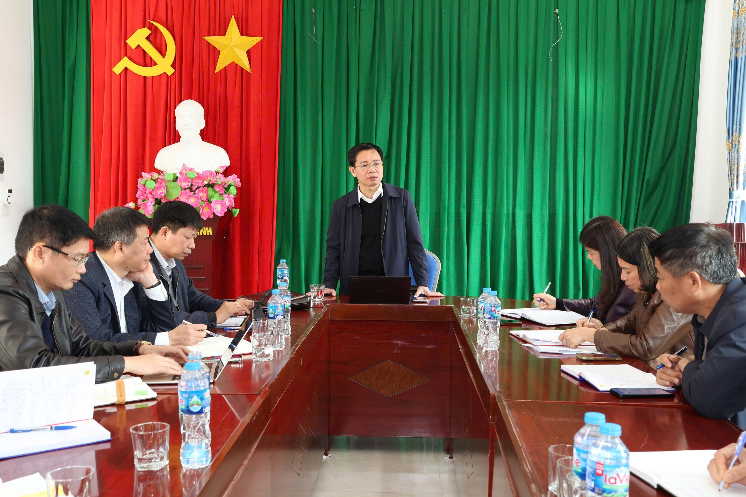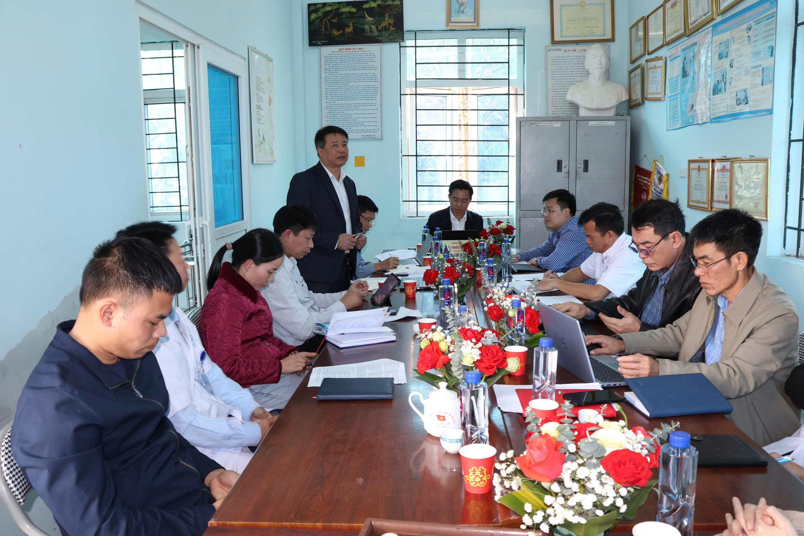 Phó Giám đốc Sở Y tế Đào Khắc Hùng cùng Tổ công tác chỉ đạo, kiểm tra, hướng dẫn chuyên môn các Trạm Y tế xã