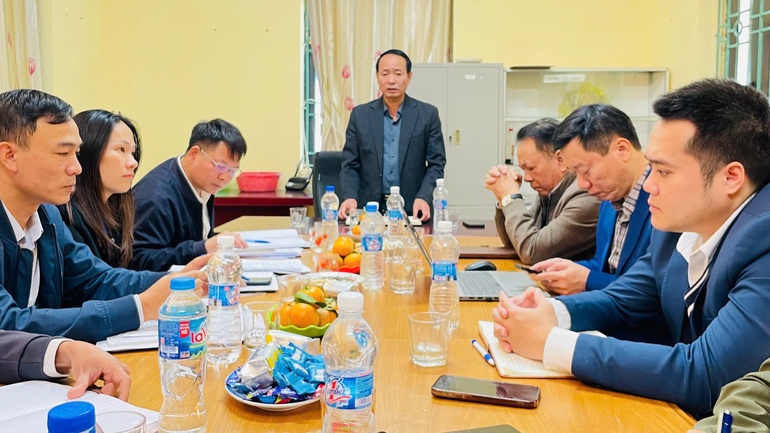 Ông Nguyễn Văn Định, Phó Giám đốc Sở Y tế Bắc Ninh phát biểu tại buổi làm việc tại Trạm Y tế Sa Lý