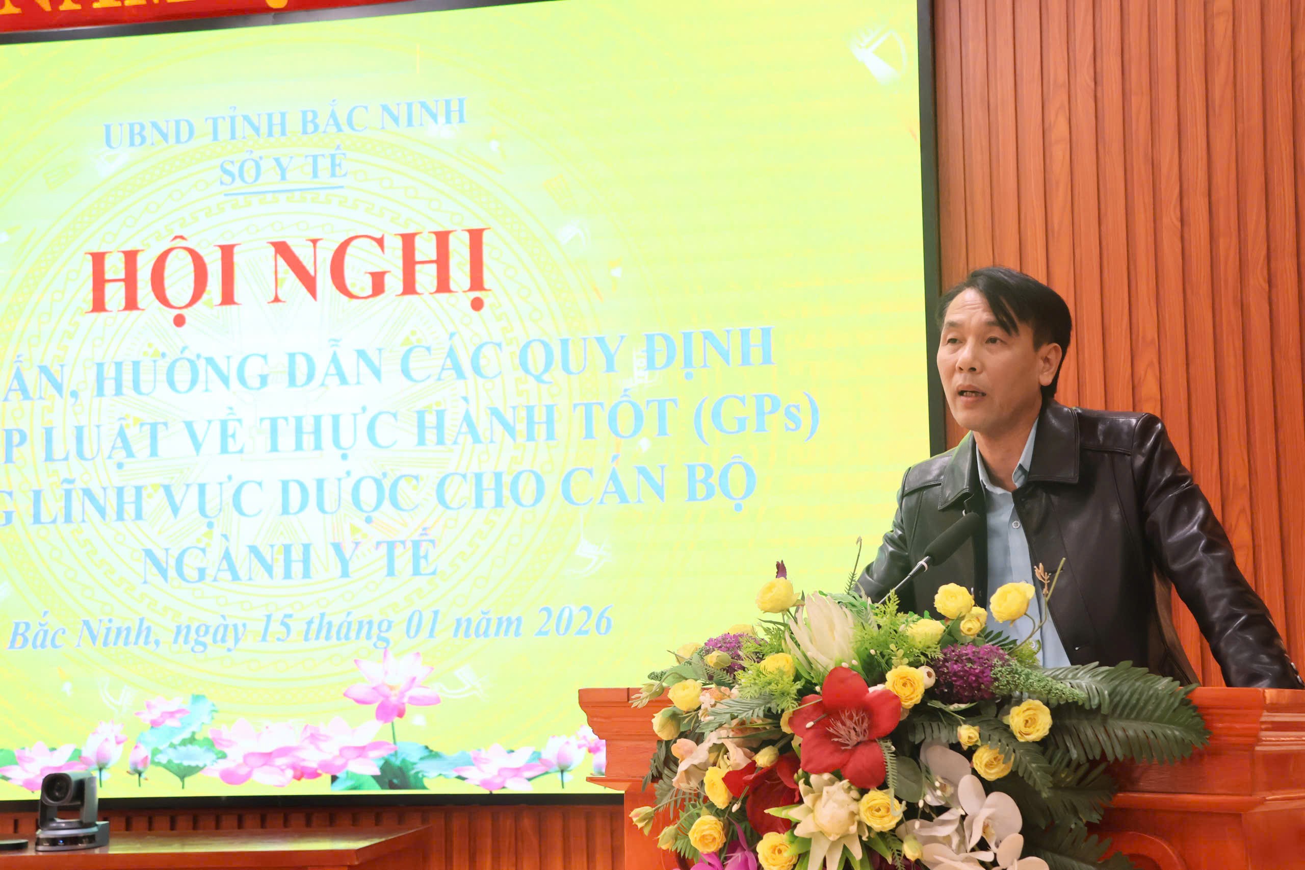 Chiều ngày 15/01, Sở Y tế Bắc Ninh tổ chức tập huấn, hướng dẫn các quy định của pháp luật về thực hành tốt (GPs) trong lĩnh vực Dược cho cán bộ ngành y tế Bắc Ninh. Tham dự buổi tập huấn có đồng chí Nguyễn Hữu Hưng – Phó Giám đốc Sở Y tế; đại diện Phòng Nghiệp vụ Dược, Nghiệp vụ Y, Quản lý hành nghề - Sở Y tế; Chi cục An toàn Vệ sinh thực phẩm; cán bộ phụ trách công tác dược tại Trung tâm Kiểm soát bệnh tật Bắc Ninh; Đại diện lãnh đạo và trưởng, phó khoa Dược – vật tư y tế tại các Bệnh viện đa khoa trên địa bàn.
