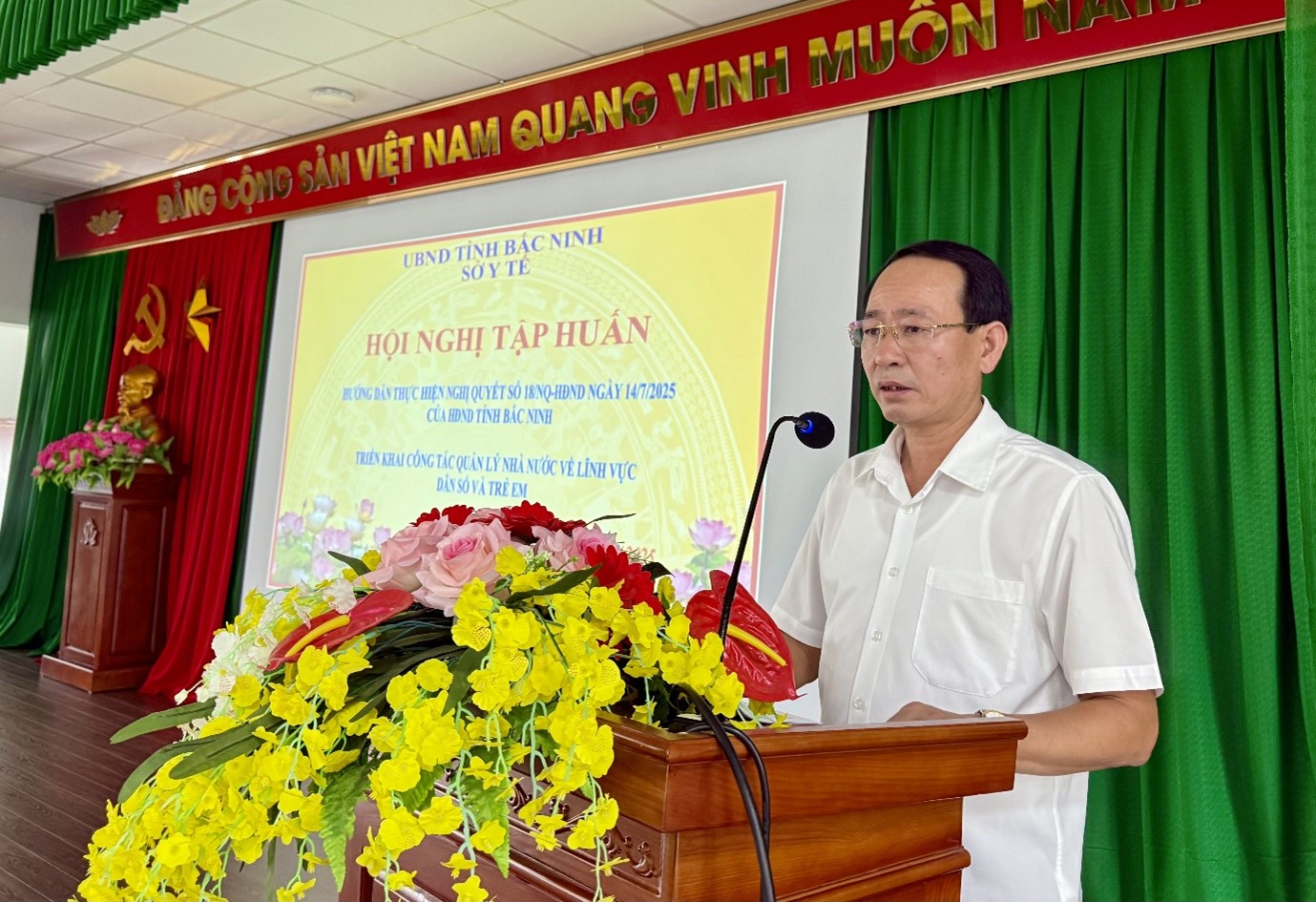 Sáng 8/8/2025, Sở Y tế tỉnh Bắc Ninh tổ chức Hội nghị tập huấn Hướng dẫn thực hiện Nghị quyết số 18/NQ-HĐND ngày 14/7 của HĐND tỉnh Bắc Ninh và triển khai công tác quản lý nhà nước về lĩnh vực dân số và trẻ em cho cán bộ làm công tác bảo trợ xã hội (BTXH), dân số và trẻ em (DSTE) tại các xã, phường trên địa bàn.