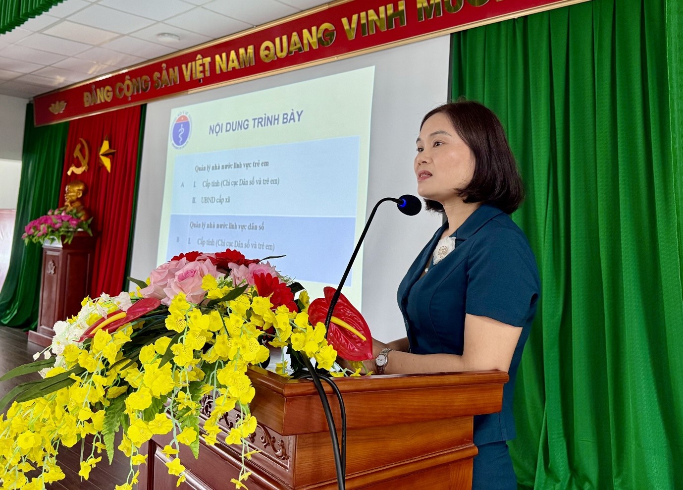 Hội nghị cũng dành thời gian để các báo cáo viên của Chi cục Dân số và Trẻ em trình bày chức năng, nhiệm vụ và chia sẻ kinh nghiệm thực tiễn, giúp cán bộ cơ sở có thể áp dụng ngay vào công việc.