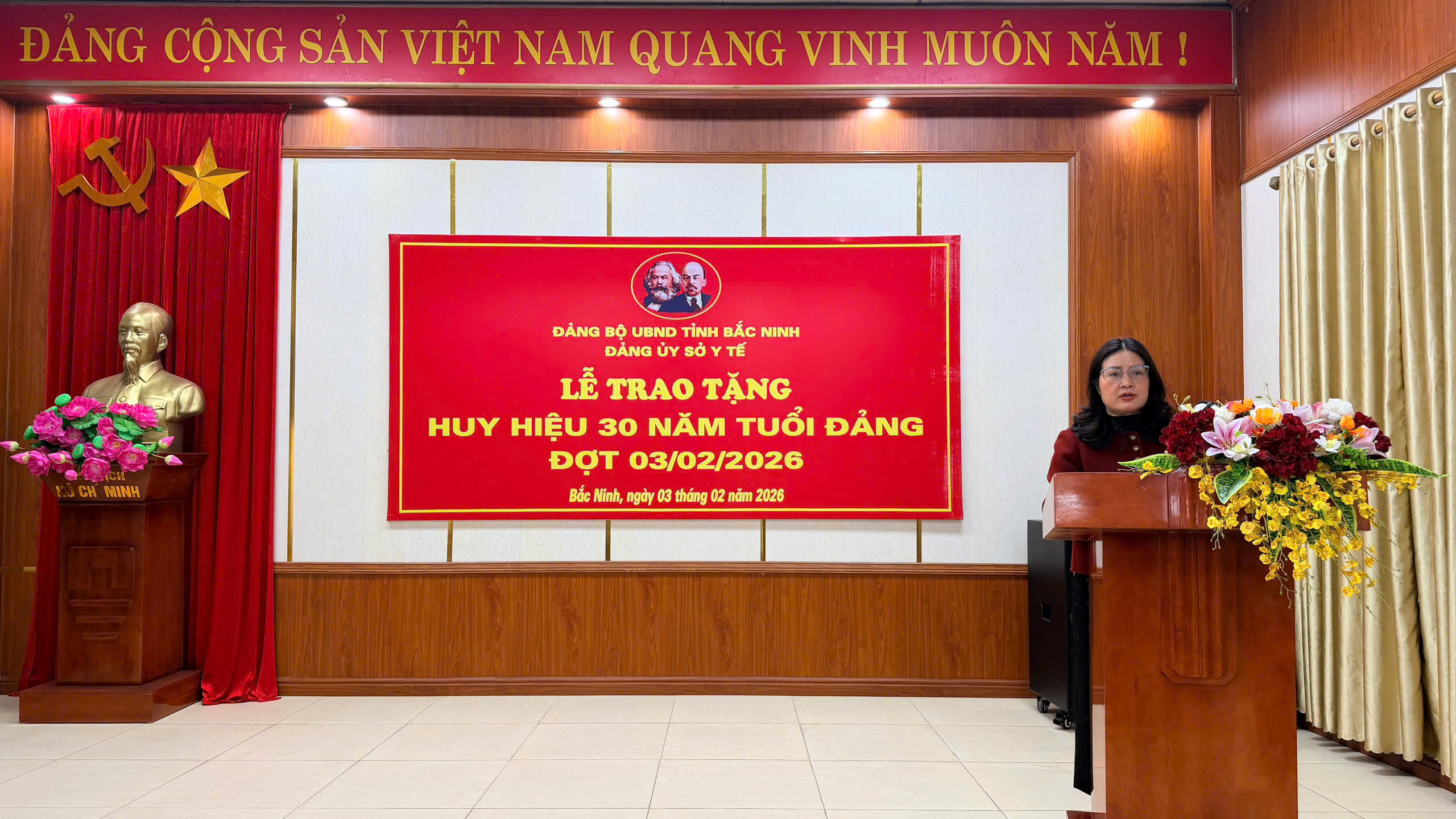 Tại buổi lễ, thừa ủy quyền của Ban Thường vụ Tỉnh ủy Bắc Ninh, đồng chí Nguyễn Thị Thu Hương – Ủy viên BCH Đảng ủy, Phó Giám đốc Sở Y tế Bắc Ninh đã trao tặng Huy hiệu 30 năm tuổi Đảng và chúc mừng đồng chí Nguyễn Văn Toản. Đây là phần thưởng cao quý của Đảng, ghi nhận những đóng góp, cống hiến và sự kiên định với lý tưởng cách mạng của đồng chí Toản trong suốt 30 năm qua.