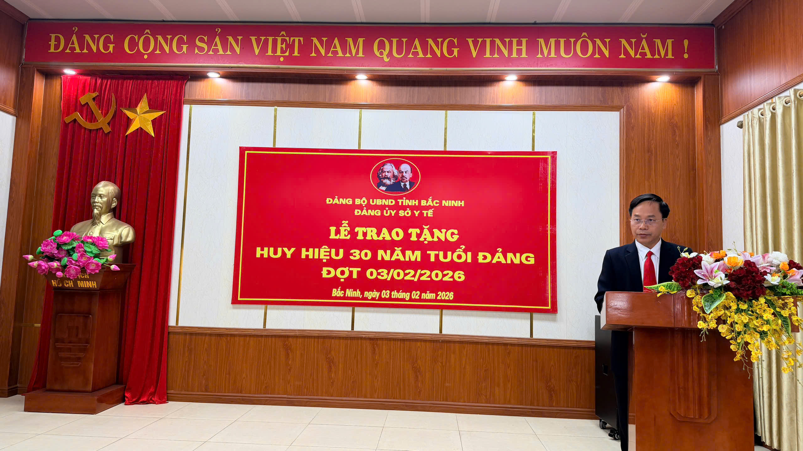 Chiều ngày 03/02/2026, Đảng Uỷ Sở Y tế Bắc Ninh đã long trọng tổ chức Lễ trao tặng Huy hiệu 30 năm tuổi Đảng cho đồng chí Nguyễn Văn Toản, hiện đang sinh hoạt tại Chi bộ Khoa Khám bệnh và VLTL-PHCN thuộc Đảng bộ bộ phận Bệnh viện Phục hồi chức năng.