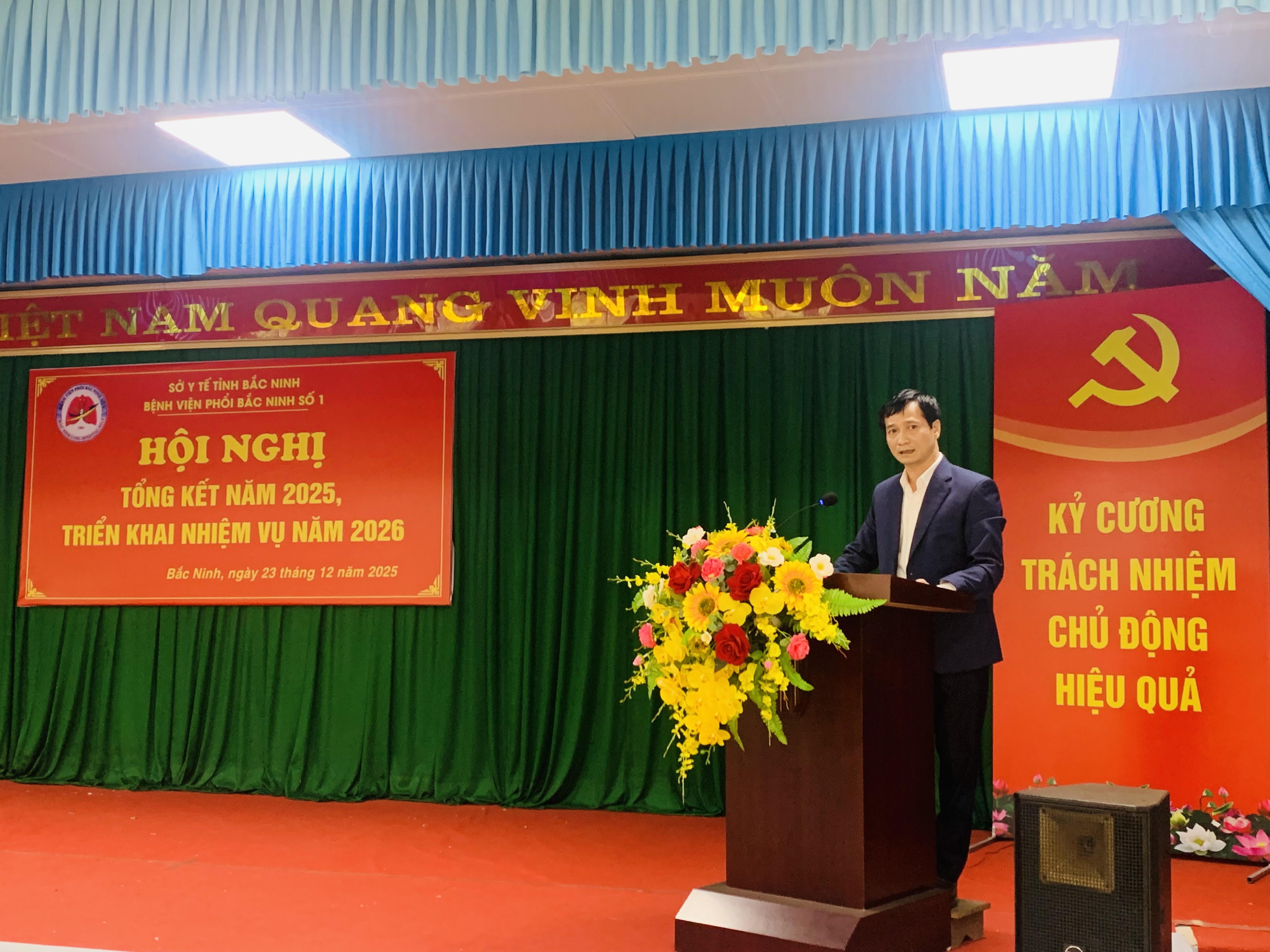 Chiều 23/12/2025, Bệnh viện Phổi Bắc Ninh số 1 tổ chức Hội nghị tổng kết công tác Đảng, chính quyền và Công đoàn năm 2025; triển khai phương hướng, nhiệm vụ năm 2026. Dự và chỉ đạo Hội nghị có đồng chí Nguyễn Quang Huy,Ủy viên ban chấp hành Đảng bộ, Phó Giám đốc Sở Y tế Bắc Ninh;  đồng chí Nguyễn Ngọc Thanh, Bí thư Đảng ủy, Giám đốc bệnh viện cùng các đồng chí đảng viên, viên chức, người lao động và đoàn viên công đoàn trong đơn vị.