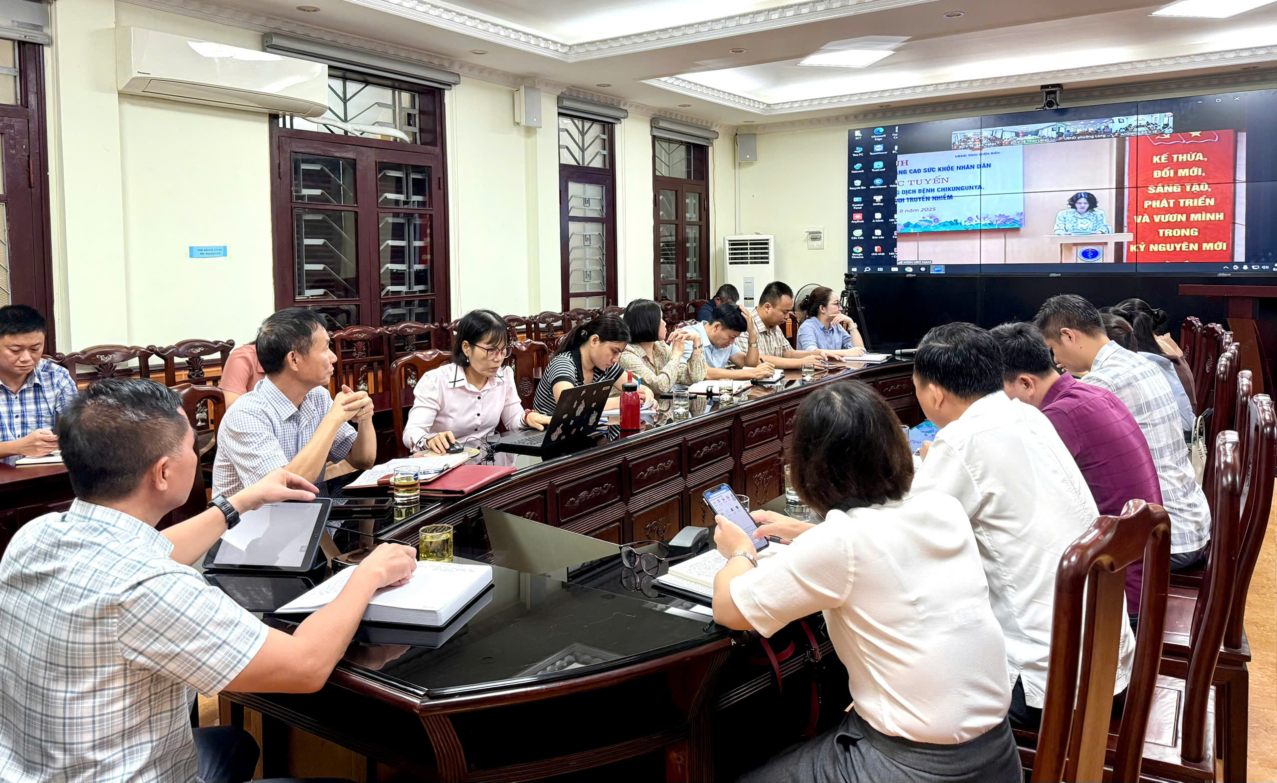 Tại điểm cầu Sở Y tế, đồng chí Từ Quốc Hiệu – Phó Giám đốc Sở Y tế trực tiếp dự và chỉ đạo