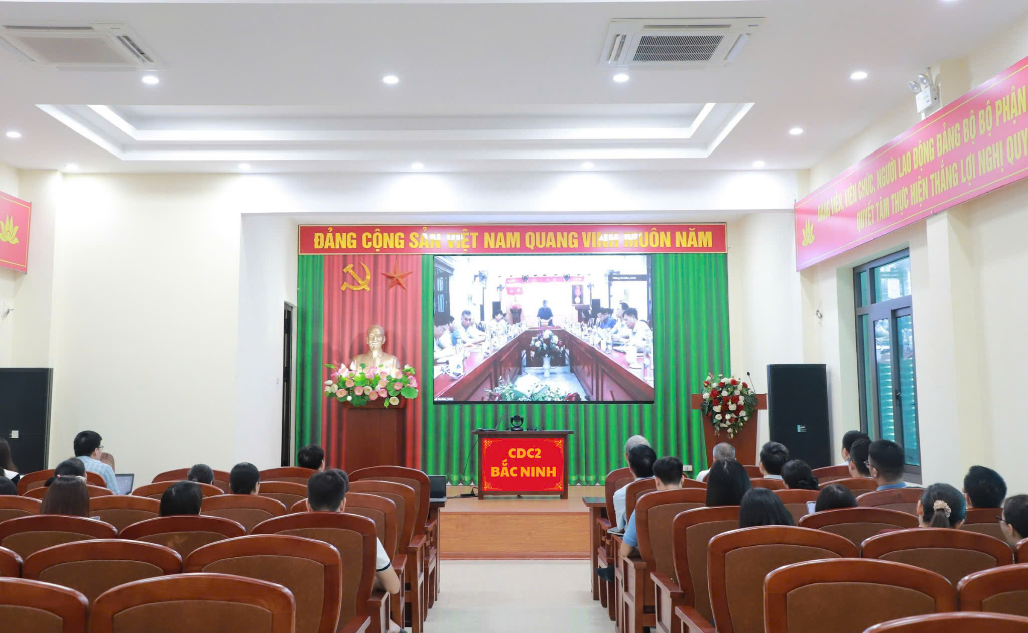 Điểm cầu Trung tâm Kiểm soát bệnh tật Bắc Ninh số 2 có sự tham gia của đại diện các Bệnh viện Đa khoa, Bệnh viện chuyên khoa, TTYT khu vực và một số Trạm Y tế trên địa bàn