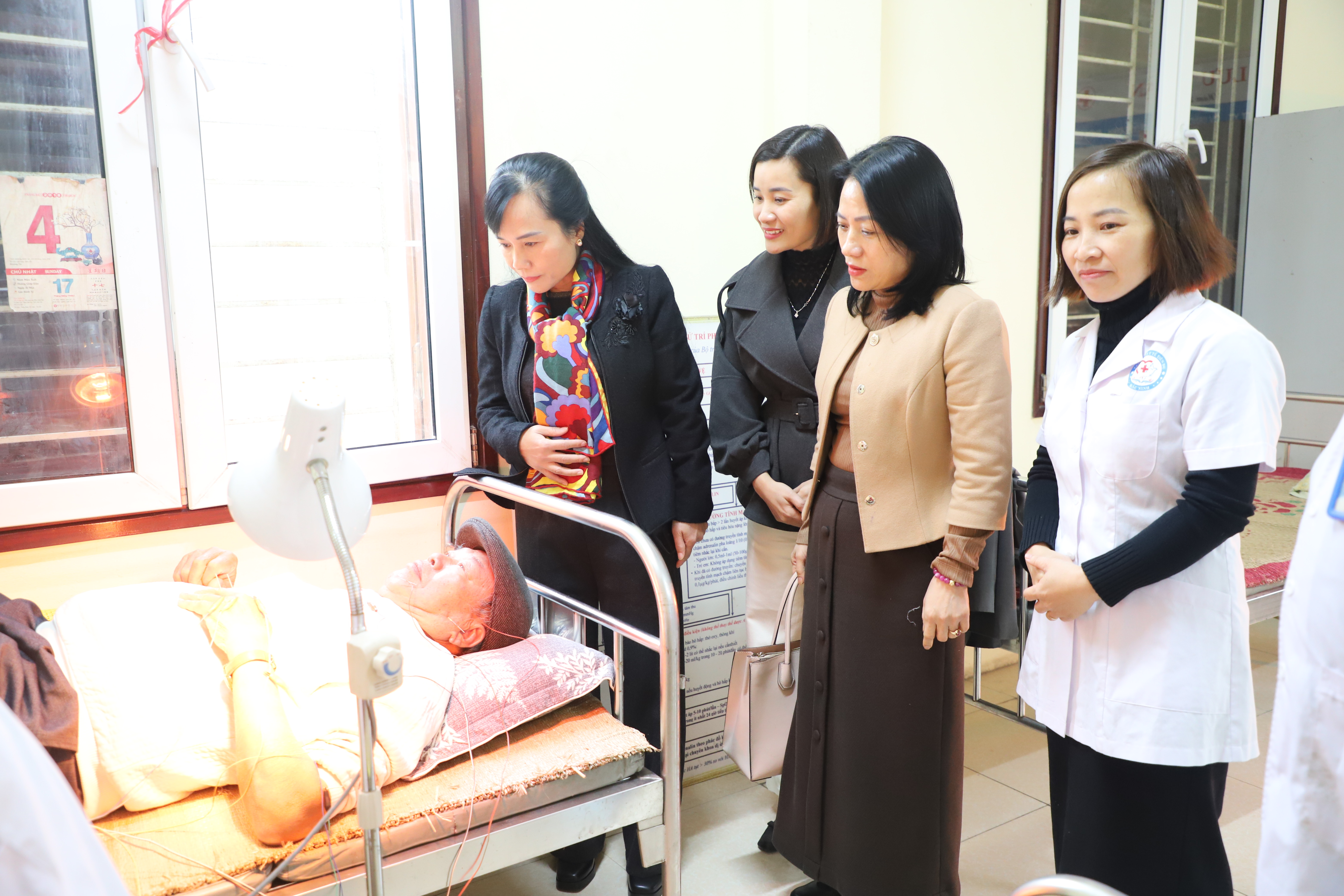 Giám đốc Sở Y tế Tô Thị Mai Hoa thăm hỏi bệnh nhân điều trị bằng y học cổ truyền tại Trạm Y tế Liên Bão